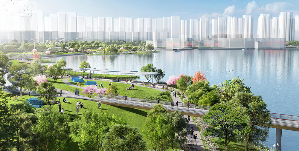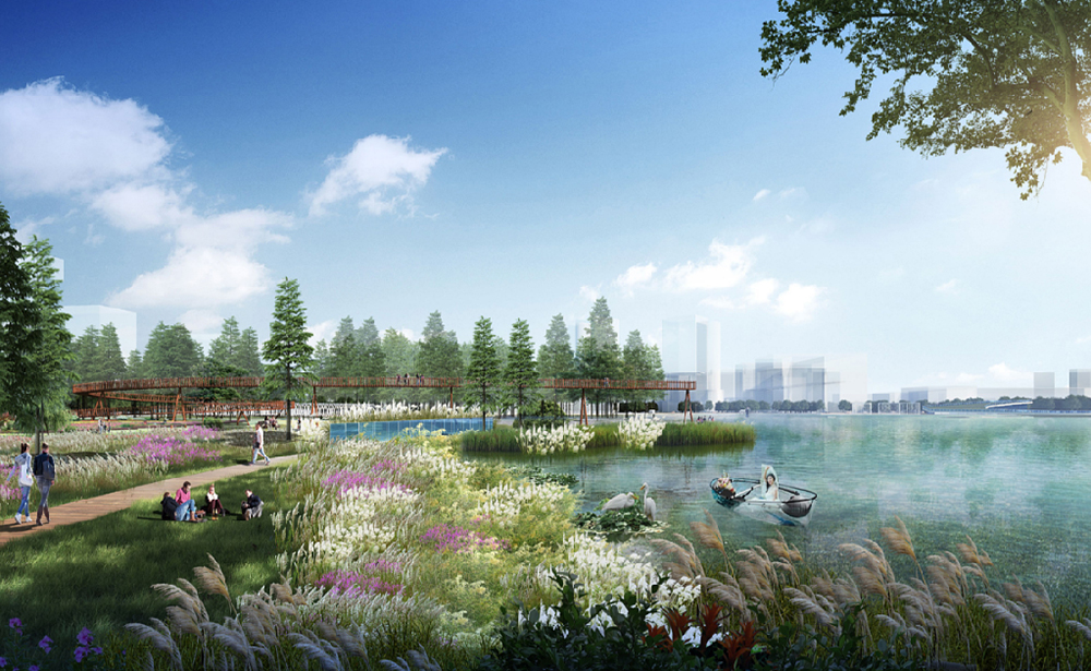 經(jīng)開(kāi)區(qū)最大的城市公園:項(xiàng)目包含500畝水體,綠化景觀豐富,圍繞“中韓文化”主題打造具有文化特色的城市公園、開(kāi)放式休憩公園。
