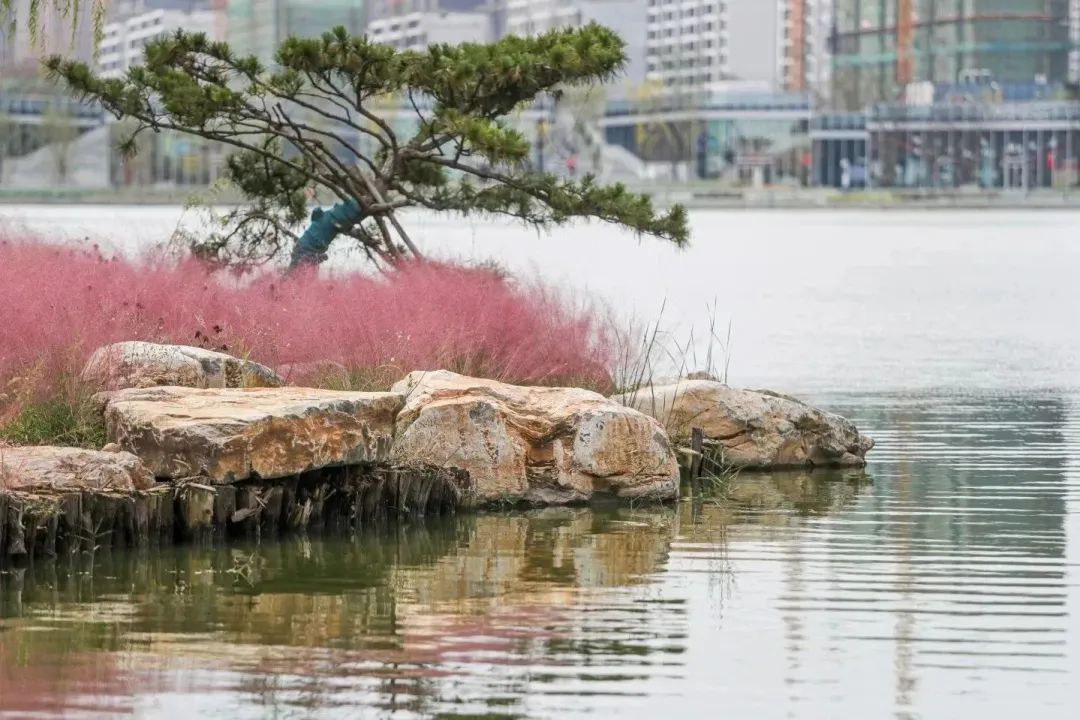 鳳依湖河岸蘆葦簇擁