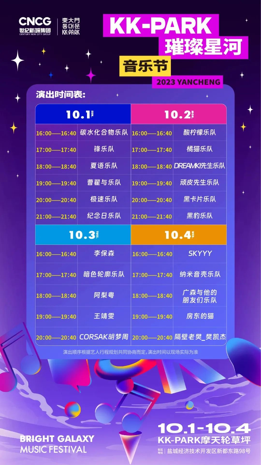 10月1日至4日,KK-PARK璀璨星河音樂(lè)節(jié)用音樂(lè)向年輕致敬,用藝術(shù)向理想發(fā)聲,房東的貓、隔壁老樊、王靖雯、阿梨粵、黑豹樂(lè)隊(duì)等22組音樂(lè)人帶來(lái)出圈歌曲和最新作品,氛圍和排面拉到最滿!