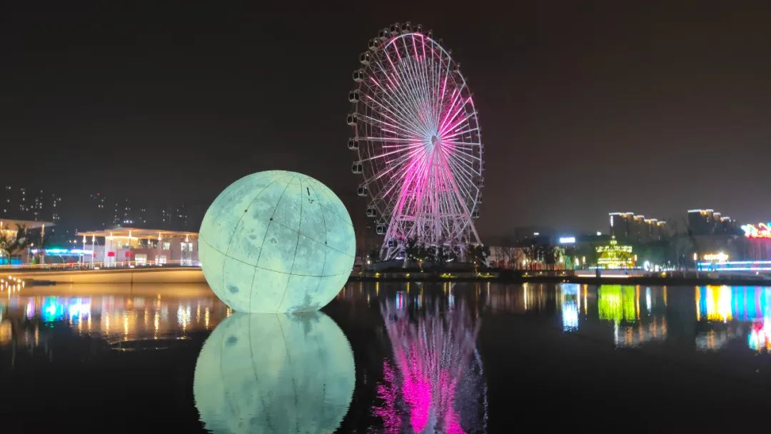 夜幕降臨后,KK-PARK中心湖的“月亮”格外惹人注目。9月28日至10月6日期間,KK-PARK將一只會(huì)發(fā)光的“超級(jí)月亮”置于湖中。在湖邊聽(tīng)歌漫步,和家人朋友拍照打卡,別有一番韻味。