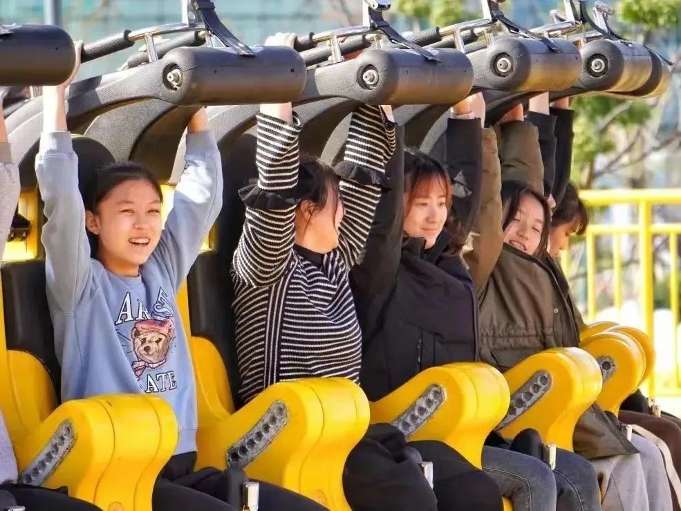 除了文化體驗,各式各樣的游樂項目也讓大家樂此不疲。學(xué)生們井然有序地在口袋屋運動工場、摩天輪、旋轉(zhuǎn)木馬、挑戰(zhàn)者之旅(大擺錘)等項目處玩耍放松。