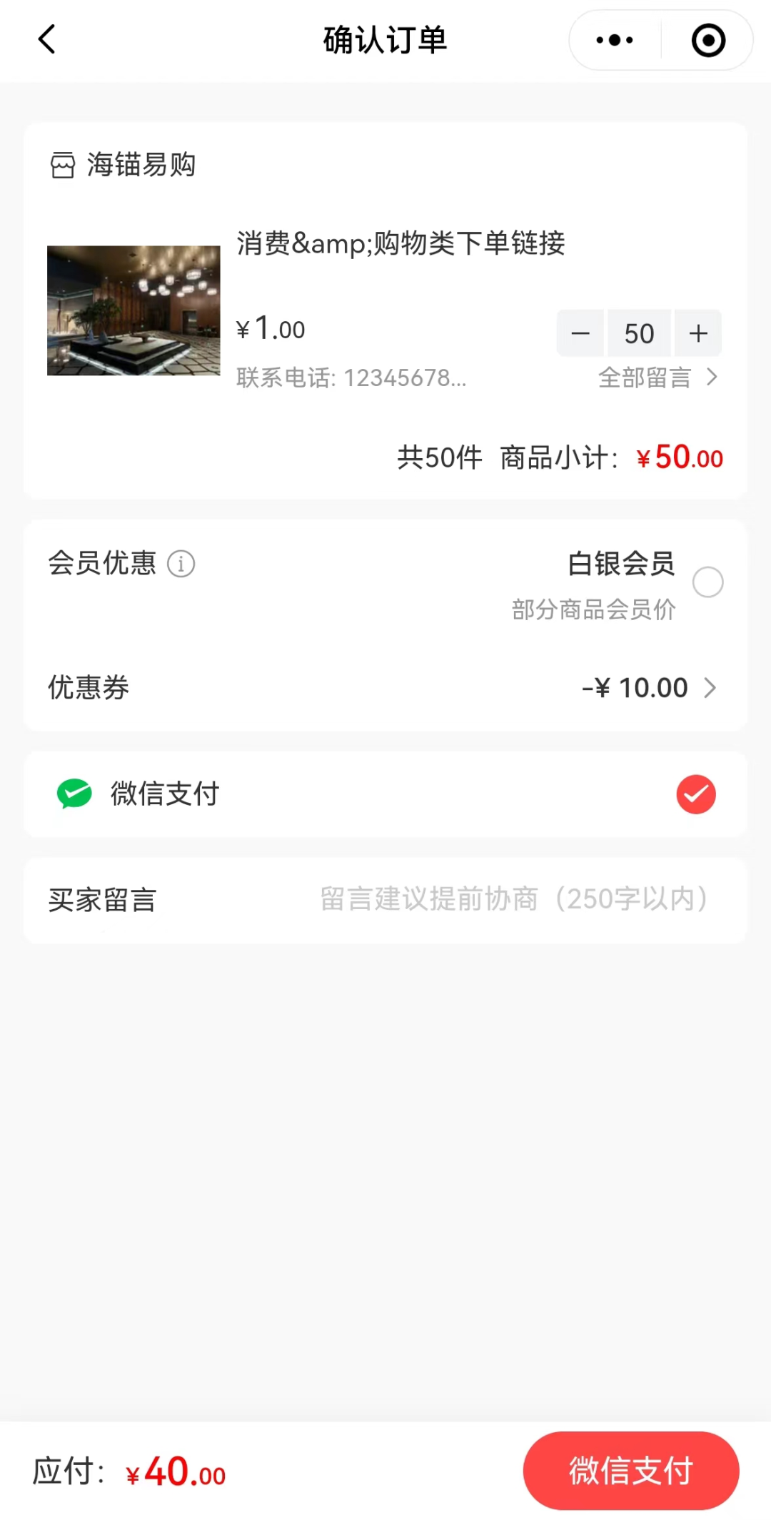 3、在“確認(rèn)訂單”頁(yè)面,領(lǐng)取到的消費(fèi)券在滿足使用門(mén)檻后即自動(dòng)抵扣,確認(rèn)無(wú)誤后,點(diǎn)擊“微信支付”。