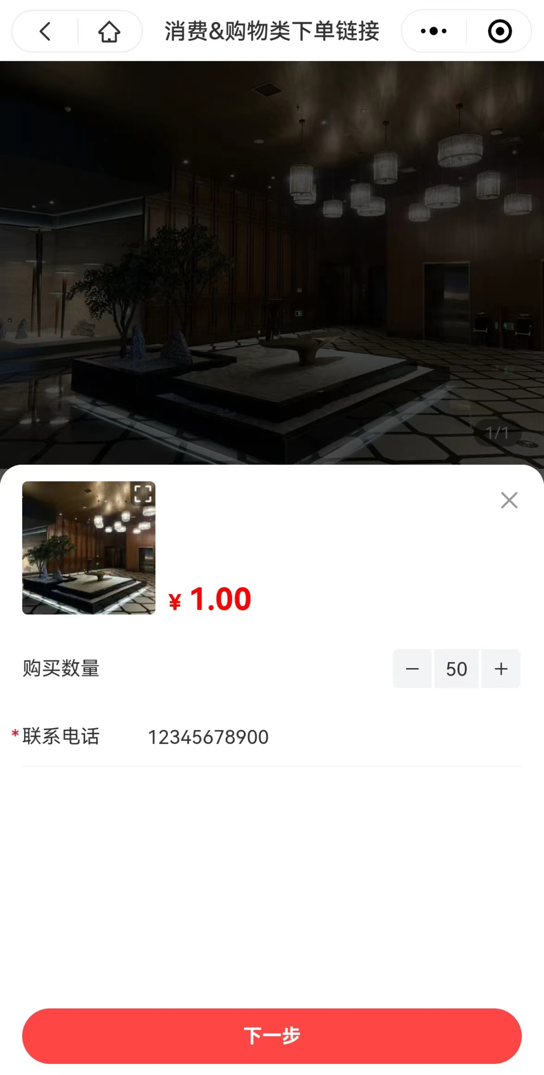2、按照實(shí)際應(yīng)付金額,修改“購(gòu)買(mǎi)數(shù)量”并填寫(xiě)手機(jī)號(hào)碼,點(diǎn)擊“下一步”。