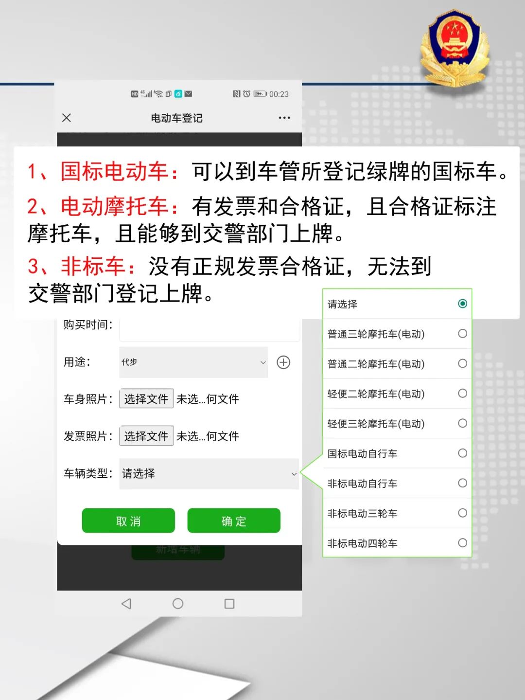 為有效預(yù)防和減少電動(dòng)車道路交通事故,維護(hù)道路交通秩序,保護(hù)人民群眾生命財(cái)產(chǎn)安全,當(dāng)前全市范圍內(nèi)正在開展電動(dòng)車普查登記,登記范圍包括電動(dòng)二、三、四輪車和電動(dòng)摩托車。民警、村干部、網(wǎng)格員、志愿者等每天走訪入戶開展相關(guān)工作,請大家予以理解與配合。大家還可以自主選擇網(wǎng)上登記,省時(shí)省力更省心。