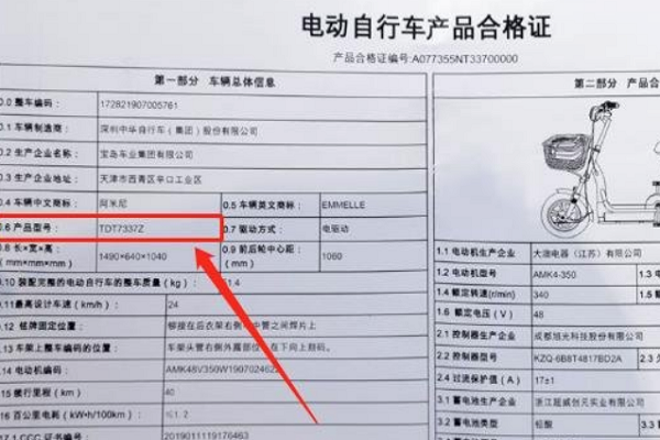 在電動(dòng)車的使用說明書或者合格證上,有明確標(biāo)注車輛型號,或者在電動(dòng)車銘牌處、前檔板處或輪胎側(cè)面貼有標(biāo)貼,標(biāo)注了車型、出廠日期、顏色、車輛配置等信息。