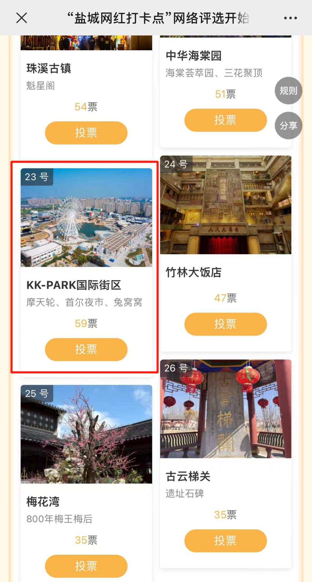 “鹽城網(wǎng)紅打卡點”網(wǎng)絡(luò)評選開始投票啦~快來為KK-PARK國際街區(qū)投上寶貴的一票!