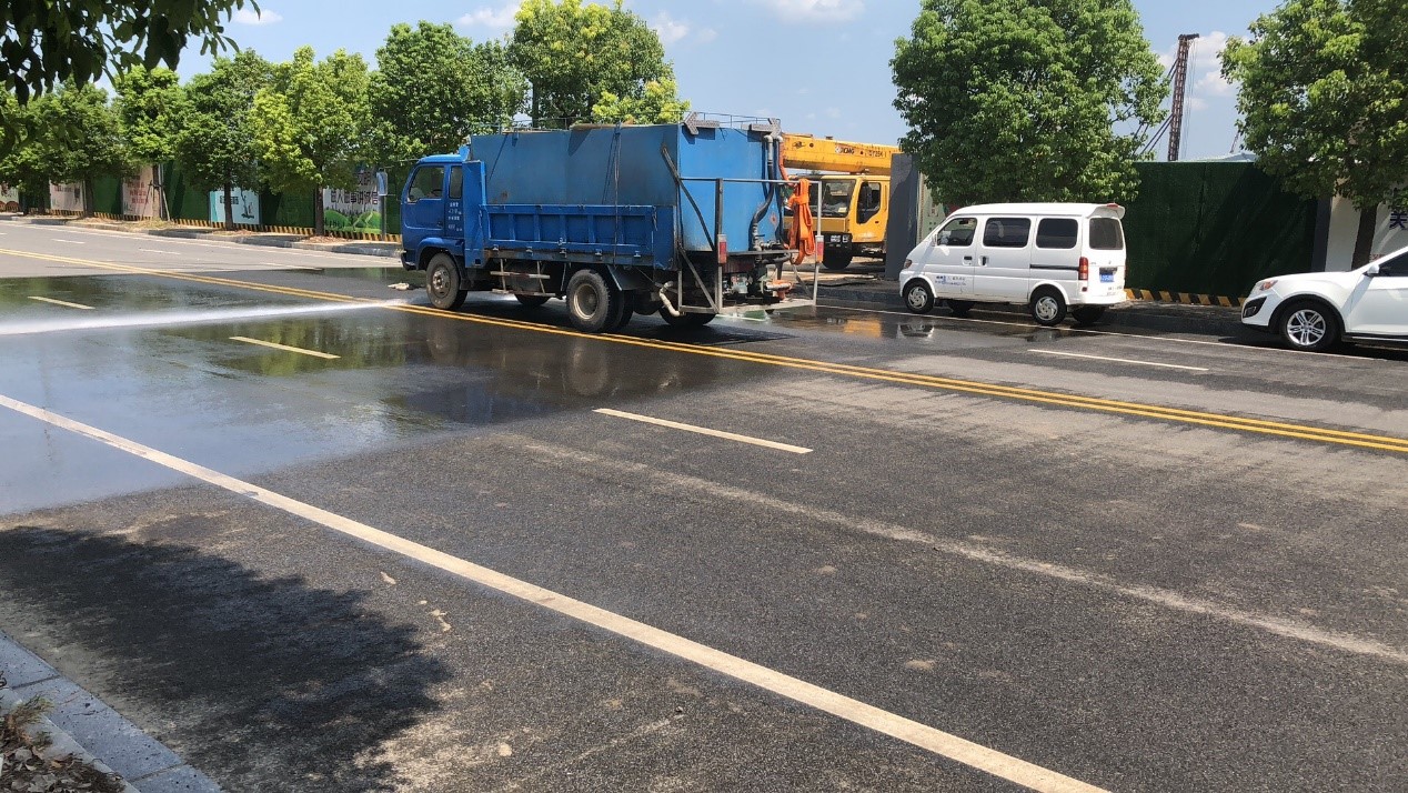 在馥桂名居二期現(xiàn)場,項目負責人張一輝望著周邊的道路上來回行駛、進行道路沖洗作業(yè)的灑水車輛說道:“近期馥桂名居二期正在進行基坑支護施工,土方開挖與運輸?shù)牧慷己艽螅h(huán)境保護的任務很重?,F(xiàn)場的臨時堆土我們都會及時進行遮蓋;工地出入口與周邊道路我們不但安排專人對車輛、路面進行沖洗,還特地租用了大型灑水車輛持續(xù)灑水作業(yè),全方位清理死角,保證萬無一失。”