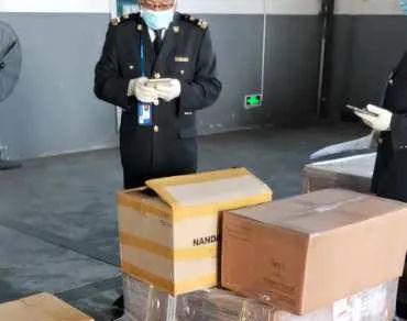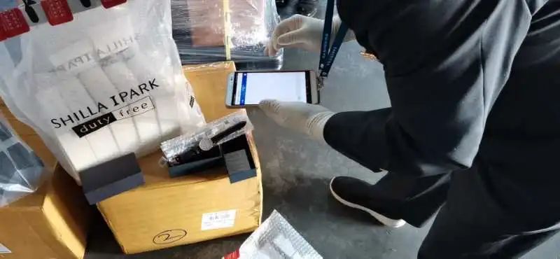 一批韓國新羅免稅店“尖貨”正在海關(guān)查驗(yàn)放行到展廳參展