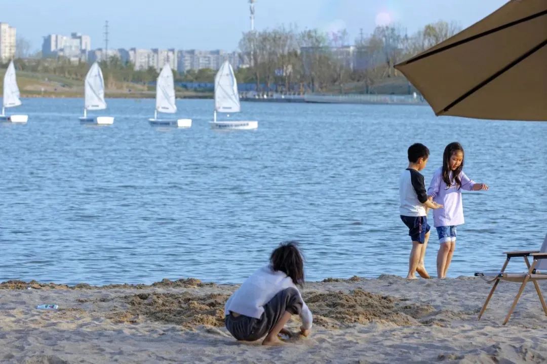 林蔭小道,空曠草坪,熱鬧的沙灘以及不遠(yuǎn)處廣闊的一線湖景。晨起跑步騎行放風(fēng)箏,傍晚野餐露營(yíng)吹吹風(fēng),來到這里就會(huì)發(fā)現(xiàn),時(shí)光都變得溫柔起來。
