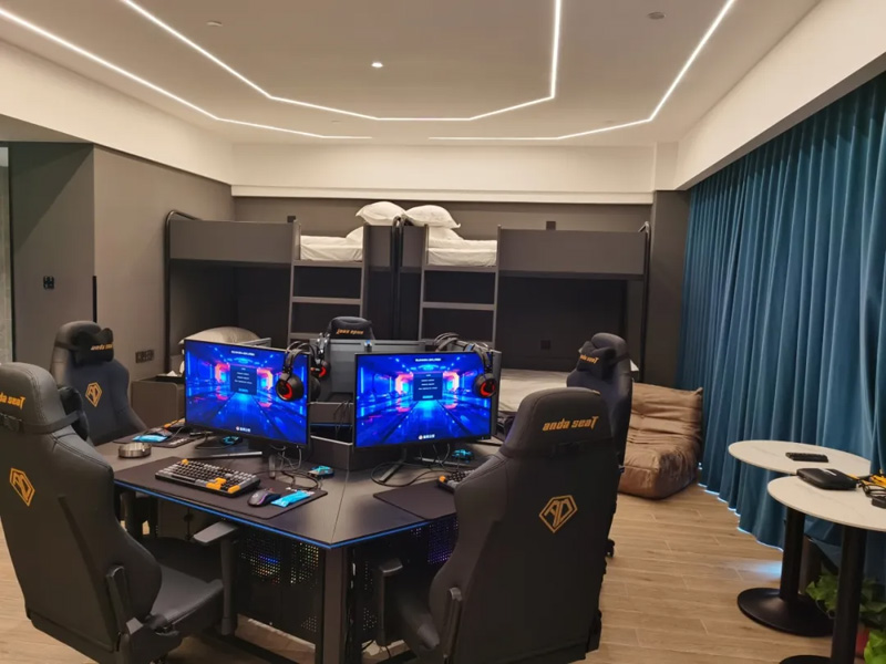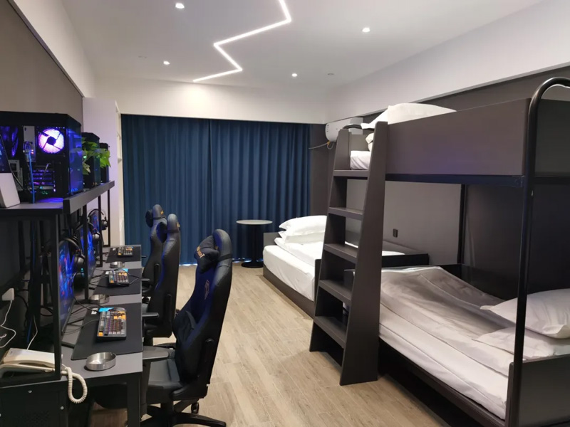 KK電競(jìng)酒店既有70后、80后的懷舊,又有90后、00后的輕奢。一樓懷舊區(qū)配置街機(jī)、小霸王游戲機(jī)、PS4等游戲設(shè)備供各年齡段客戶免費(fèi)體驗(yàn),電競(jìng)教室可同時(shí)容納30人開(kāi)展電競(jìng)比賽,目前已組織開(kāi)展王者榮耀邀請(qǐng)賽、CS GO精英邀請(qǐng)賽、無(wú)畏契約精英邀請(qǐng)賽,吸引300余人參與。為滿足年輕客戶的不同需求,酒店一至三層設(shè)置電競(jìng)雙人房、三人房、四人房、豪華五人房等房型共30間,房間內(nèi)配有高配置電腦及迷你食品飲料吧服務(wù),另有國(guó)內(nèi)外單機(jī)、網(wǎng)絡(luò)游戲等。