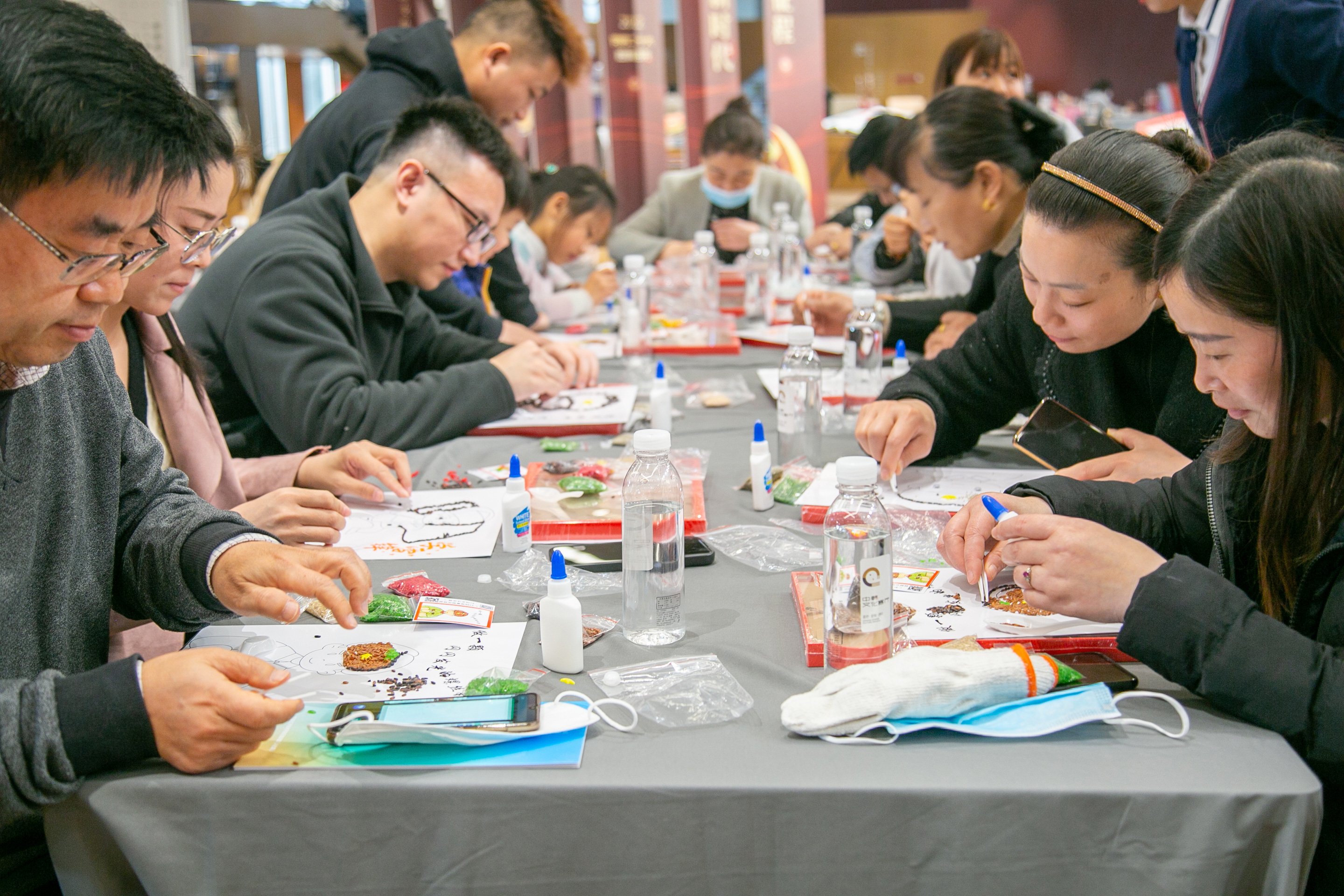 分享會(huì)結(jié)束后,志愿者們一同參加了“我心中的雷鋒”谷物畫(huà)創(chuàng)作。大家在老師的指導(dǎo)下,把常見(jiàn)的綠豆、黃豆、紅豆等谷物當(dāng)作繪畫(huà)制作材料,通過(guò)手工拼貼,一粒一粒的精心描繪自己心中的雷鋒同志形象。